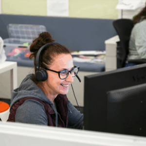 Stephanie Pierce on a call with one of our customers